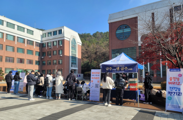 이번 캠페인은 ‘금주엔 금주’라는 슬로건으로 음주 및 우울 선별검사 절주 상식으로 구성된 절주 모의고사 음주위험체질 알코올 패치 테스트 음주고글 착용을 통한 음주 상태 체험 음주발판 체험을 이용한 나의 음주 위험도 확인 생활 속 절주수칙 등 대학생들이 자연스럽게 이해할 수 있는 다양한 프로그램으로 구성, 진행됐다.