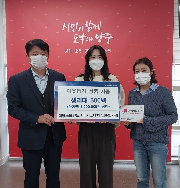 이창열 회천4동장은 “지역사회에 관심을 가져주시고 나눔을 실천해주신 카페 관계자분들께 진심으로 감사드리고 보내주신 따뜻한 마음이 취약계층에 잘 전달될 수 있도록 최선을 다하겠다”고 말했다.