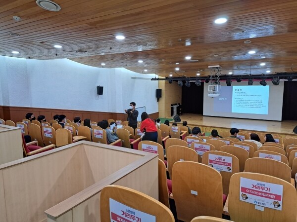 의왕시청소년수련관에서 진행된 이번 교육은 직원들의 ESG에 대한 이해도를 높이는 한편 업무 현장에서 실질적인 실천과 재단 이용자들에게 친절한 서비스 제공을 위해 ESG 교육 3시간, 고객서비스 교육 2시간으로 구성해 진행했다.