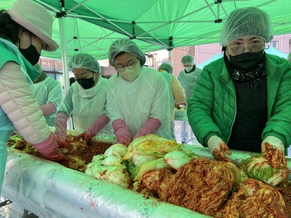 이날 담근 김치 50상자는 유문수 주민자치회장이 기부한 김장김치 50상자와 함께 관내 저소득 독거어르신 100명에게 전달됐다.