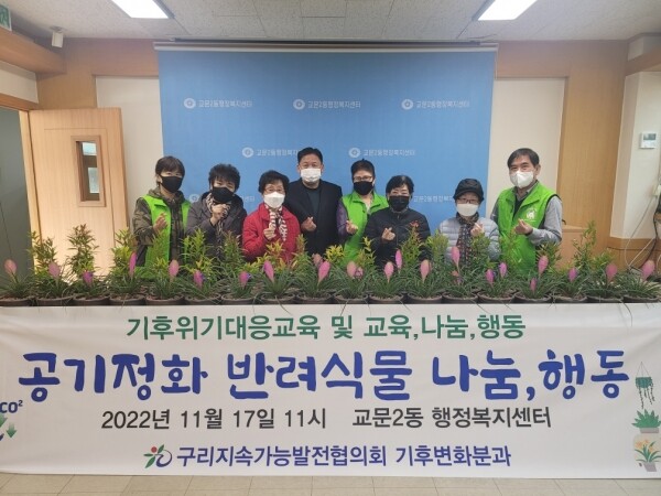 반려식물은 실내에서 기르기 좋은 틸란드시아와 피어리스 2종류로 대표적인 공기정화 식물이며 구리시 지속가능발전협의회 기후변화분과 주관으로 위원들이 직접 화분을 제작했다.