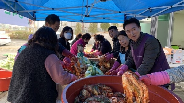 지난 11월 16일부터 17일까지 배추를 절이고 속을 만들어 김치를 만드는 작업을 하느라 쌀쌀한 날씨에도 봉사자들의 이마에는 구슬땀이 맺혔다.