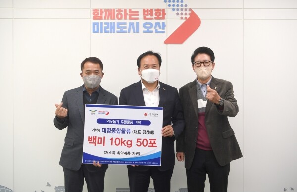 이에 이권재 오산시장은 “지역사회에 관심을 갖고 소중한 나눔을 실천해주신 대명종합물류에 감사드린다”며 “정성을 담아 기탁해주신 물품을 이웃들에게 잘 전달해 따뜻한 겨울을 보낼 수 있도록 하겠다”고 답했다.
