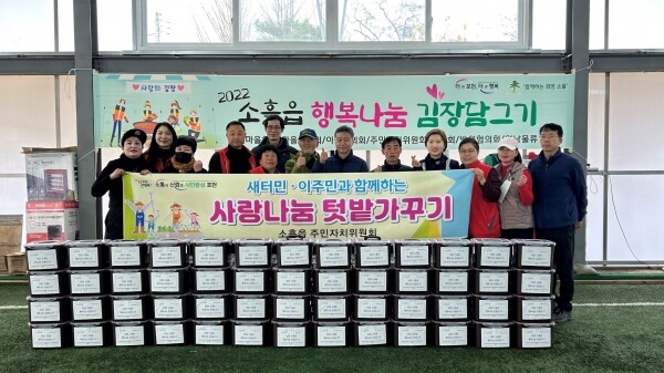 강효진 소흘읍장은 “어려운 이웃을 위한 뜻깊은 김장행사에 참여해주신 유관단체 회원님들께 감사드린다 앞으로도 소흘읍 행복나눔 행사가 지속적으로 추진될 수 있도록 적극 지원하겠다”고 전했다.