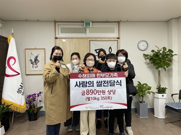이번 전달식은 국공립어린이집 10개 기관의 후원으로 수해피해 한부모가족에 쌀 10kg, 350포를 전달하는 행사다.