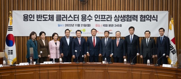 이날 협약식에는 이충우 여주시장, 곽노정 SK하이닉스 대표이사, 이한준 LH사장, 김성구 용인일반산업단지 대표가 여주시 상생협력 협약서에 서명했고 이창양 산업부 장관, 방문규 국무조정실장, 정진석 국민의힘 비상대책위원장, 성일종 국민의힘 정책위의장, 김선교 국회의원 등이 참석했다.
