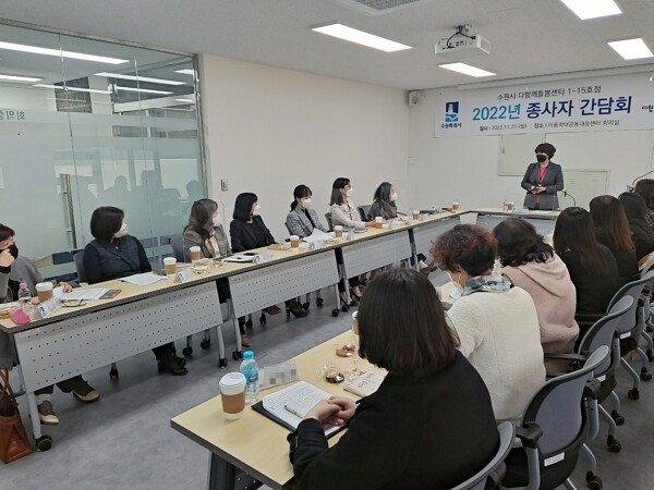 이날 간담회에는 다함께돌봄센터 1~15호점 센터장과 돌봄교사, 수원시 보육아동과 공직자 등 30여명이 참석했다.