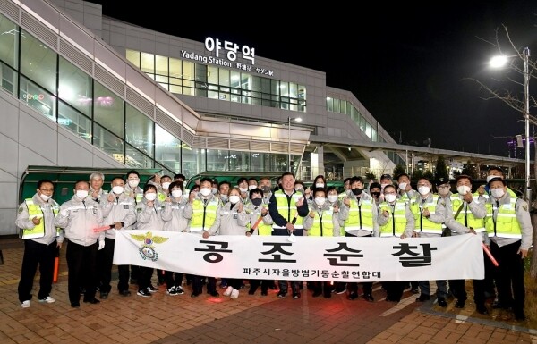 파주시자율방범기동순찰연합대는 각 읍면동 방범대가 담당 지역을 순찰하는 것 외에도 연합대원들이 한 달에 한 번 모여 공동으로 순찰하는 공조 순찰을 실시해 지역사회 안전에 기여하고 있다.