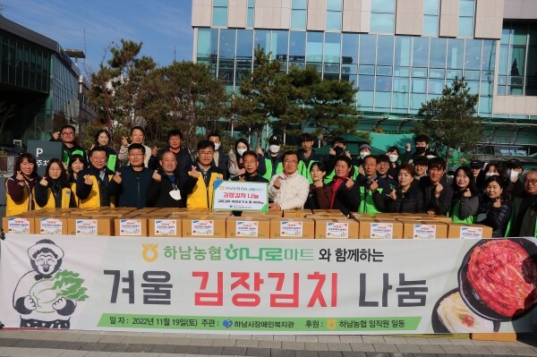 하남농협 하나로마트 노용남 조합장은 “이번 김장김치 나눔으로 하남시 내 장애인들 모두 따뜻한 겨울을 보내시길 바란다”며 “앞으로도 다양한 나눔을 통해 지역사회와 함께 동행 할 수 있도록 노력하겠다”고 말했다.