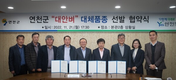 이날 김덕현 연천군수와 임철진 연천농협조합장, 최종철 전곡농협조합장, 현상태 임진농협조합장은 2025년 이전에 대안벼 대체품종을 확정하고 연천군에서 고품질 벼 품종이 재배 될 수 있도록 공동 노력하기로 뜻을 모았다.