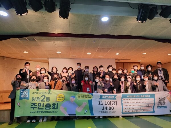 2022년 사업 활동 보고 주민총회 선정 의제 설명, 9개 의제 숙의과정을 통한 퍼실리테이션, 개표 결과 발표 순서로 진행된 이번 주민총회에서는 주민들이 설문지를 통해 제시한 총 162건의 의견 가운데 18개의 의제를 사전에 선정하고 이를 다시 13개의 주요 의제로 정리해 10월 26일부터 31일까지 화정2동 주민들을 대상으로 찬반 결정을 위한 온·오프라인 주민 투표를 실시해 과반수 득표된 사업을 선정했다.