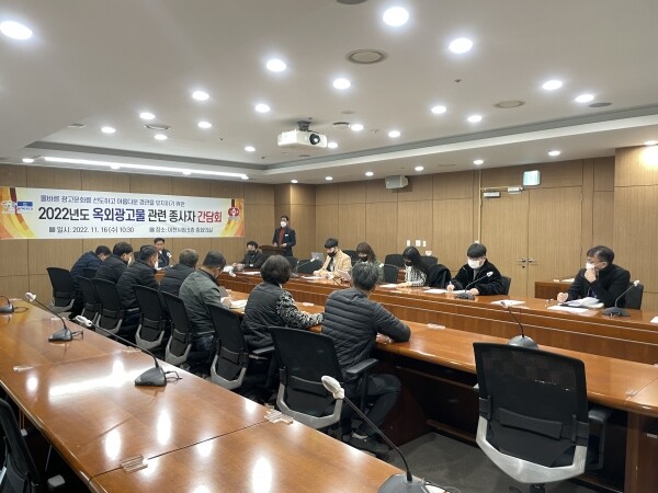 이번 간담회는 생활수준의 향상에 따른 쾌적한 환경과 주민의 욕구를 충족시키고 올바른 옥외광고물 게첨 문화를 정착시키기 위한 소통의 자리로 주요내용은 2022. 12. 11.부터 시행되는‘옥외광고물 등의 관리와 옥외광고산업 진흥에 관한 법률’개정에 따른 법률 개정사항 전파 및 옥외광고물 종사자의 애로사항을 듣고 해결방안을 찾아보는 자리였다.
