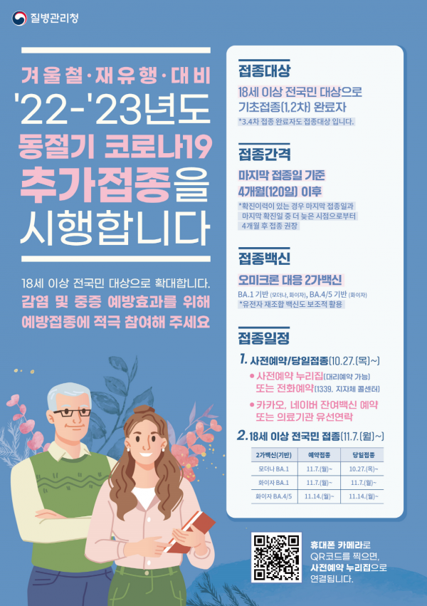 접종 대상은 기초 접종을 완료한 18세 이상 국민이다.