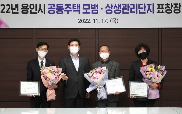 이상일 용인특례시장은 지난 17일 시청 시장실에서 열린 수여식에서 아파트 대표 및 유공자 2명에게 용인시장상을 전달했다.