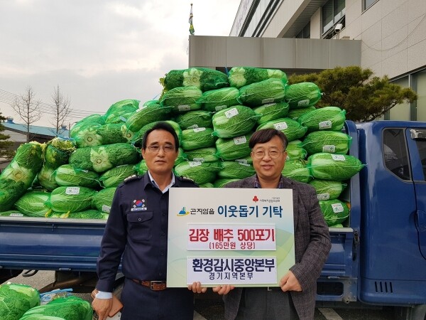 [뉴스서울] 환경감시중앙본부 경기지역본부 김수복 본부장은 지난 21일 광주시 곤지암읍 행정복지센터를 방문해 김장배추 500여포기를 기탁했다.