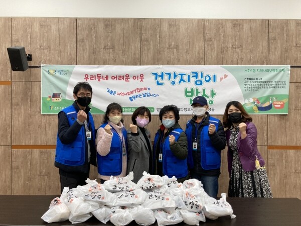 ‘우리동네 어려운 이웃 건강지킴이 밥상’은 소하1동 항아리보쌈과 파파맹코 시루떡, 촌장골 등 나눔문화 실천업소 3개소와 기타 민간자원 결연으로 관내 취약계층 30가구에 월 2회 소하1동 지역사회보장협의체 위원들이 직접 방문해 안부를 확인하며 음식을 전달하는 사업이다.