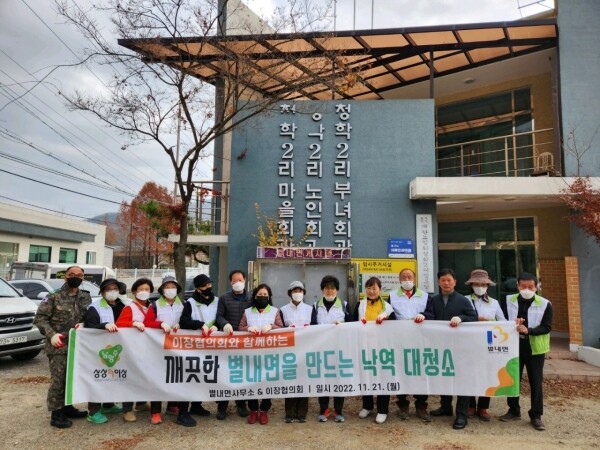 이번 낙엽 대청소에는 변성자 이장협의회장과 협의회 위원들을 비롯해 정진수 청학파출소장, 이범준 별내면지역대장, 별내면사무소 직원 등 30여명이 참여했다.
