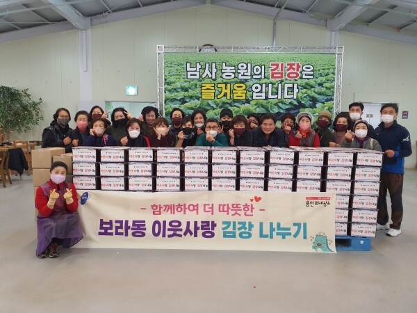 지난 23일 보라동 통장협의회, 새마을부녀회, 체육회, 지역사회보장협의체 등 40여명이 참석해 처인구 남사읍 남사농원에서 10㎏짜리 김치 128박스를 담갔다.