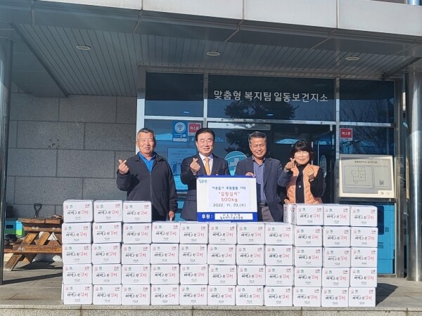 행사는 관내 저소득 가정 100가구에 김치 5kg씩 지원했으며 마을 이장과 일동면행정복지센터 직원들이 각 가구를 방문해 김치를 전달하며 안부를 살폈다.