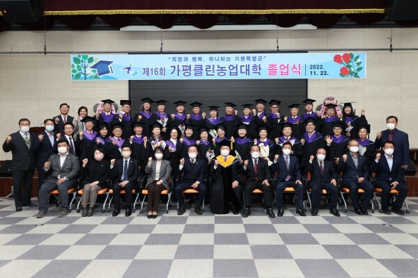 가평군수이자, 클린농업대학 학장인 서태원 군수는 “어려운 상황 속에서도 1년 동안 열정을 다해 학업에 전념한 87명의 졸업생들에게 진심으로 축하드리고 앞으로 가평농업·농촌을 이끌어 갈 유능한 인재로 성장해, 힐링과 행복이 넘치는 하나되는 가평특별군 발전에 기여해 줄 것”을 당부했다.