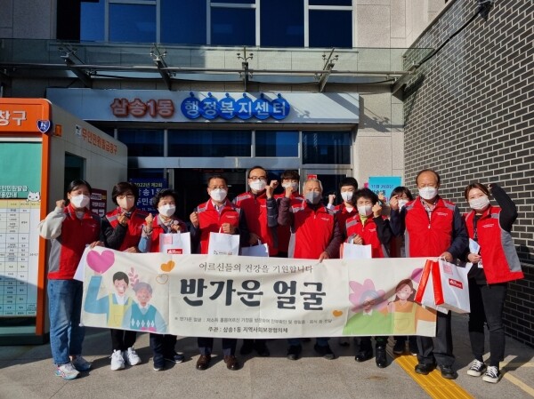 ‘반가운 얼굴’사업은 저소득층 독거어르신 15명에게 분기 별로 생필품·먹거리 등을 전달하면서 안부를 확인하는 삼송1동 지역사회보장협의체 특화사업이다.