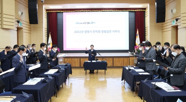 한편 광명시는 직원 간 인사철 축하 선물·화환 안 주고 안 받기 전 직원 4시간 이상 청렴교육 의무 이수 청렴표어 공모 1 부서 1 청렴 과제 실천하기 등 다양한 청렴 시책을 추진해 ‘청렴 광명 만들기’에 전념한다는 방침이다.
