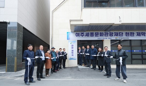 여주세종문화광재단(이사장 이순열)은 24일 오전 여주시 천송동 재단 청사 앞에서 ‘여주세종문화관광재단 현판 제막식’을 진행했다.