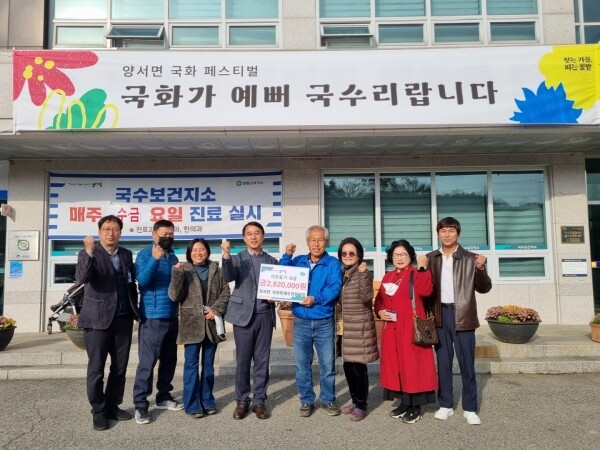 이번 성금은 지난 10월 29일 양서면사무소 국수출장소 일원에서 개최한 국수리 국화축제에서 국화분재 판매 등을 통해 마련한 기금으로 관내 소외된 이웃을 위해 사용해달라며 위원들이 한마음 되어 기탁했다.