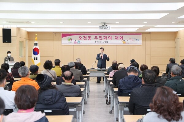 올해 세 번째로 열린 ‘찾아가는 시장실’에 참석한 90여명의 오전동 주민들은 오매기지구 개발사업 모락로 보도 확장공사 오전다구역 재개발 게이트볼장 수해복구 등과 관련한 다양한 의견을 건의하고 논의했다.