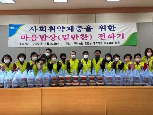 이날 전달식에는 구리농협 ‘고주모’ 박선애 회장을 비롯해 회원 15명과 유재호 농협중앙회 구리시지부장, 구리단위농협 남광우 상무, 교문1동장이 참석했으며 후원받은 밑반찬은 독거어르신 50가구에 전달될 예정이다.