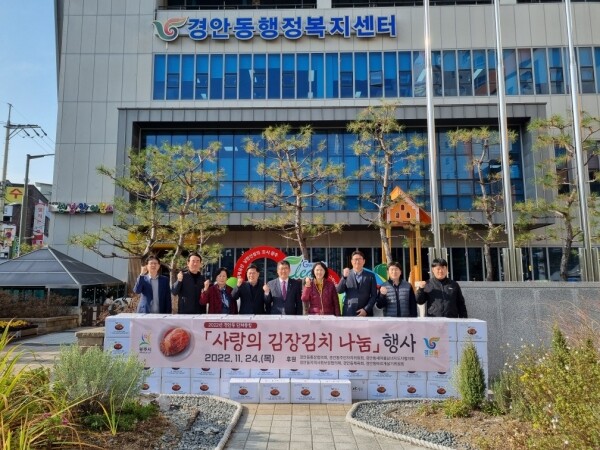 표동진 경안동장은 "매년 뜻깊은 김장김치 나눔 행사를 진행해 주신 경안동 단체장분들께 진심으로 감사드린다"며 "우리 주변의 어려운 이웃이 따뜻한 겨울을 보낼 수 있도록 더욱 꼼꼼히 주변을 살피겠다"고 전했다.