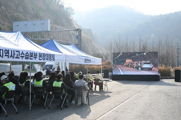 이날 현장훈련은 지난 23일 시청 상황실에서 실시한 도로터널 사고대응 토론훈련을 바탕으로 수도권제1순환고속도로 노고산2터널에서 발생한 차량 다중 추돌사고로 유해화학물질이 누출돼 다수의 인명피해가 발생하는 복합 재난 상황을 가정해 현장을 신속하게 수습·복구하는 행동훈련으로 진행했다.