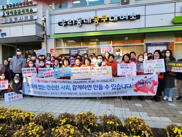 행사에 참석한 동두천시 여성단체협의회 이유화 회장은 “사회 곳곳에 다양한 형태의 폭력으로 인해 고통받고 있는 사람들이 많아지고 있고 더 이상 모른 척 지나치는 남의 일이 아니다”며 “가족과 이웃이 어떤 형태의 폭력이든 고통받지 않도록 많은 관심이 필요하다 이번 캠페인을 통해 동두천 시민 모두가 폭력 예방에 대한 올바른 인식을 갖는 계기가 되기를 바란다”고 전했다.