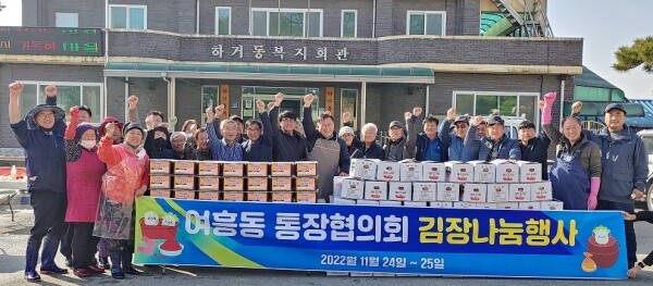 이번 김장나눔 행사는 여흥동 통장, 통장 배우자, 하거통 마을주민 등 100여명이 참여한 가운데 배추 500포기 분량의 김장을 직접 담가 총 200통의 김장김치를 여흥동행정복지센터에 전달했다.