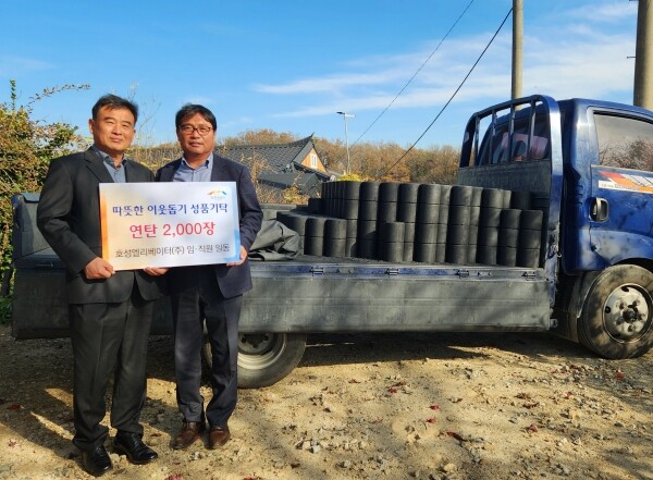 ㈜호성엘리베이터 임·직원 일동은 ‘어려운 이웃들이 겨울을 따뜻하게 보냈으면’ 하는 마음으로 연탄을 기탁하게 됐다고 밝혔다.