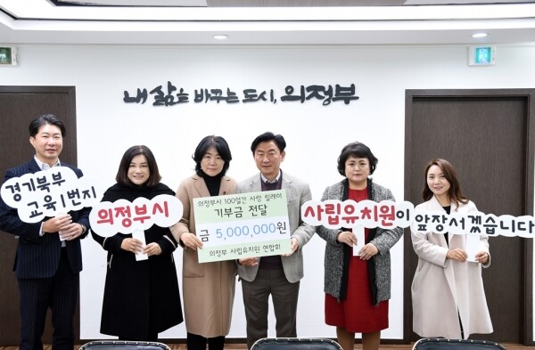 이날 전달식은 시장실에서 열렸으며 의정부시 사립유치원 연합회 회장 박옥순을 포함해 5명의 유치원 연합회 회원 및 임원들이 참석했다.