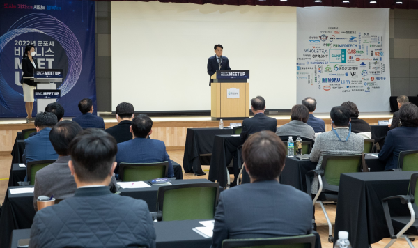 이번 비즈니스 밋업 사업은 관내 기업들의 산업 트랜드 방향에 맞는 신산업 오픈 이노베이션으로 기업들의 사업 협력을 통한 ‘기업의 성공 전략 특강’을 진행하고 관내 6개 기업을 사전에 선정해 ‘기업 IR 피칭’을 통한 기업발표 및 질의응답, 마지막으로 하은호 군포시장이 직접 참여하는 ‘기업인 현장 간담회’ 프로그램과 기업 간 네트워킹 시간으로 진행됐다.