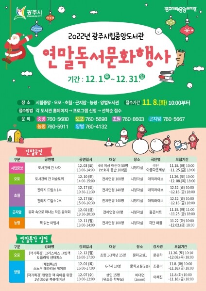 도서관 관계자는 “도서관이 시민들과 함께하는 독서·문화 체험 공간으로써 한 해를 마무리하는 연말을 더욱 풍성히 할 수 있길 바라며 내년에도 더욱 알찬 프로그램들을 운영할 계획”이라고 말했다.