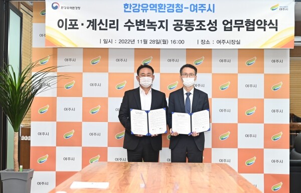 이번 협약을 통해 이포리 403번지, 흥천면 계신리 559-1번지 일원 약 48,990㎡에 수변녹지조성사업을 한강청과 여주시가 공동으로 진행한다.
