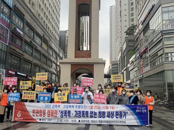 이번 캠페인은 유동인구가 많은 지하철 미사역 주변에서 여성폭력피해 관련기관인 하남성폭력·가정폭력상담소 직원과 공무원 등 30여명이 참여했다.