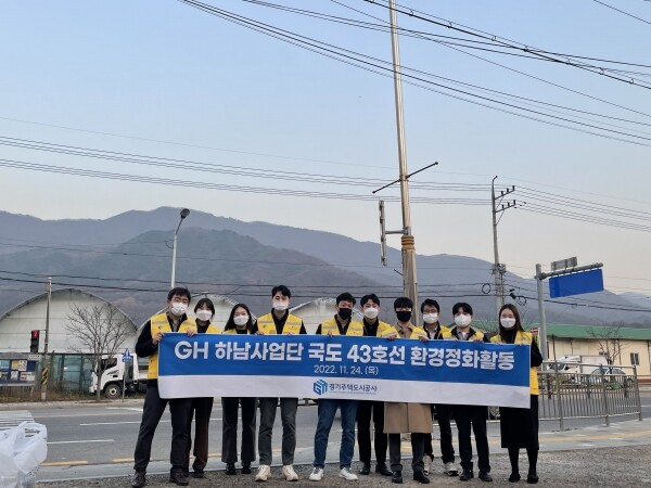 이번 환경정화 활동에선 GH 하남사업단 직원 10여명이 참여해 하남시 천현동~상산곡동에 이르는 국도 43호선 주변 약 2km을 걸으며 도로변 및 주변공원에 방치된 재활용품 및 쓰레기 수거활동을 실시했다.