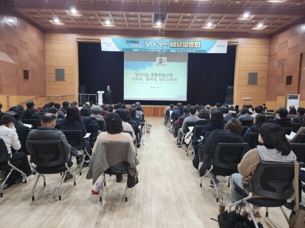 이날 동고양세무사회 회장인 장창민 세무사의 2023년 달라지는 종합부동산세, 양도소득세, 상속·증여세 설명회와 법무법인 태평양 지방세 전문위원인 오정의 전문위원의 취득세, 재산세 절세팁 설명이 이뤄졌다.
