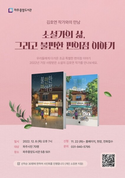 프로그램은 선착순 70명을 모집하며 파주중앙도서관 홈페이지를 통해 신청하면 된다.