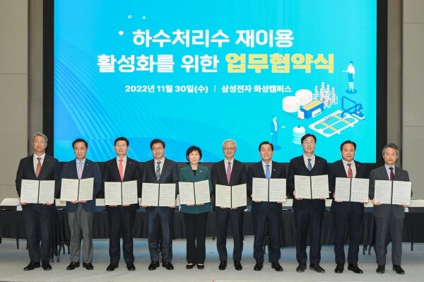 시는 30일 삼성전자 화성캠퍼스 DSR 타워에서 환경부, 경기도, 삼성전자, 수원시, 용인시, 평택시, 오산시, 한국수자원공사, 한국환경공단 등과 ‘하수처리수 재이용 활성화 업무협약’을 체결했다.