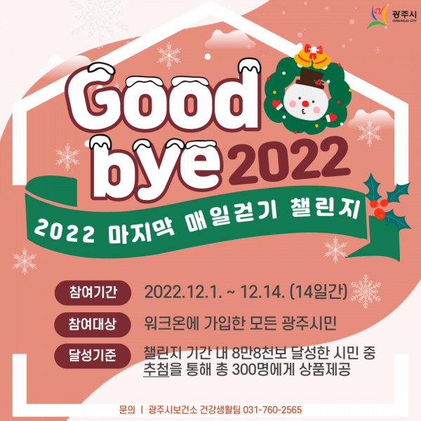 12월에는 2022년 마지막 매일 걷기 챌린지 ‘Good bye 2022’를 운영한다.