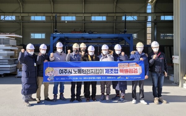 여주시, 노동안전지킴이 등 9명은 연라동 에스지판넬 공장을 방문해 안전모 착용 주요 재해 예방 조치 관리 대상 유해 물질 관리 안전담당자 지정 여부 등을 집중적으로 점검했다.