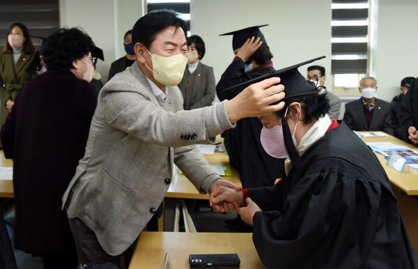 사색아리랑예술단의 국악공연으로 막을 연 졸업식은 노인대학생 29명이 참석했으며 개근상 18명, 정근상 6명, 공로상 6명, 모범상 2명, 노력상 6명이 수상하는 영예를 안았다.
