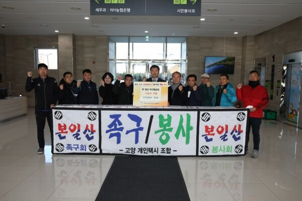 본일산 족구봉사회는 택시 운행으로 사용한 가스 1리터당 10원씩을 적립해 2016년부터 활동해온 봉사단체로 적립금과 회비를 모아 나눔을 실천하고 있으며 앞으로도 어려운 이웃에게 보탬이 될 수 있는 일에 적극 참여하겠다고 밝혔다.