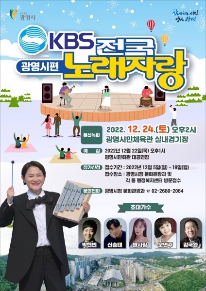 예선은 12월 22일 오후 1시부터 광명시민회관 대공연장에서 실시되며 본선은 오는 24일 오후 2시부터 광명시민체육관 실내경기장에서 녹화방송으로 진행된다.
