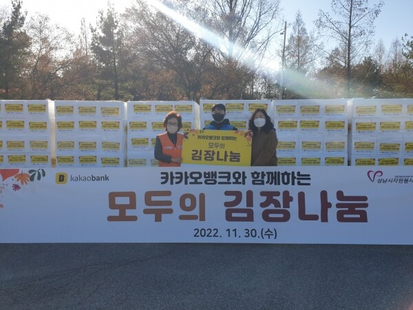 취약 계층 가정의 한겨울을 지낼 수 있는 김장김치 나눔활동은 성남시자원봉사센터에서 기획하고 카카오뱅크가 총 15톤의 김장김치를 기부했다.